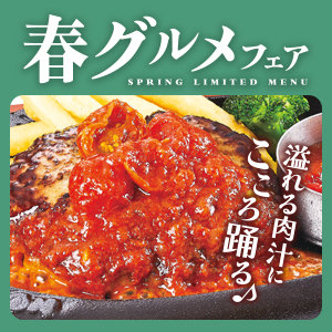 【3/5~5/20まで】春のグルメフェアを開催♪大好評!幸せのハンバーグをアレンジした新メニューが登場!詳しくはこちら!