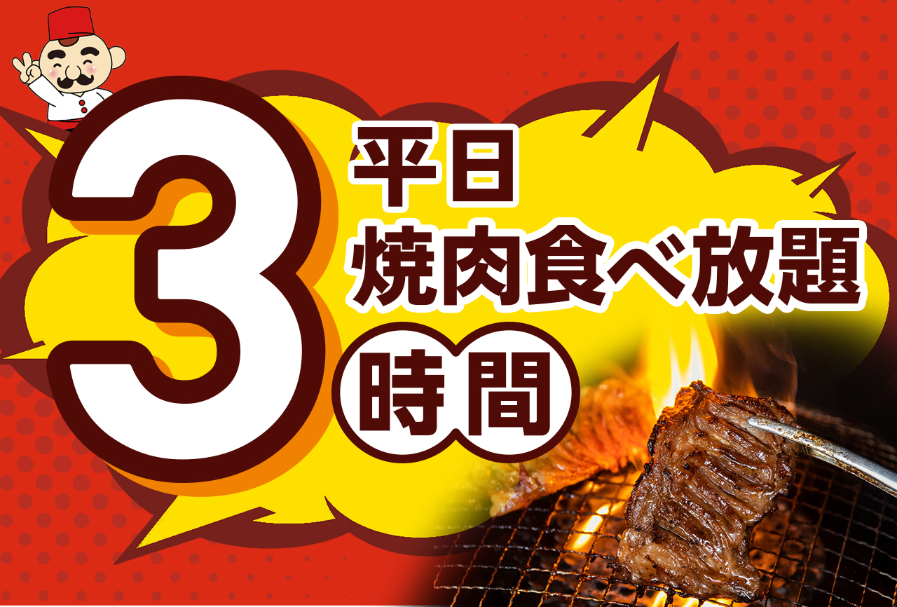 - 平日は食べ放題のご利用時間が3時間となります。