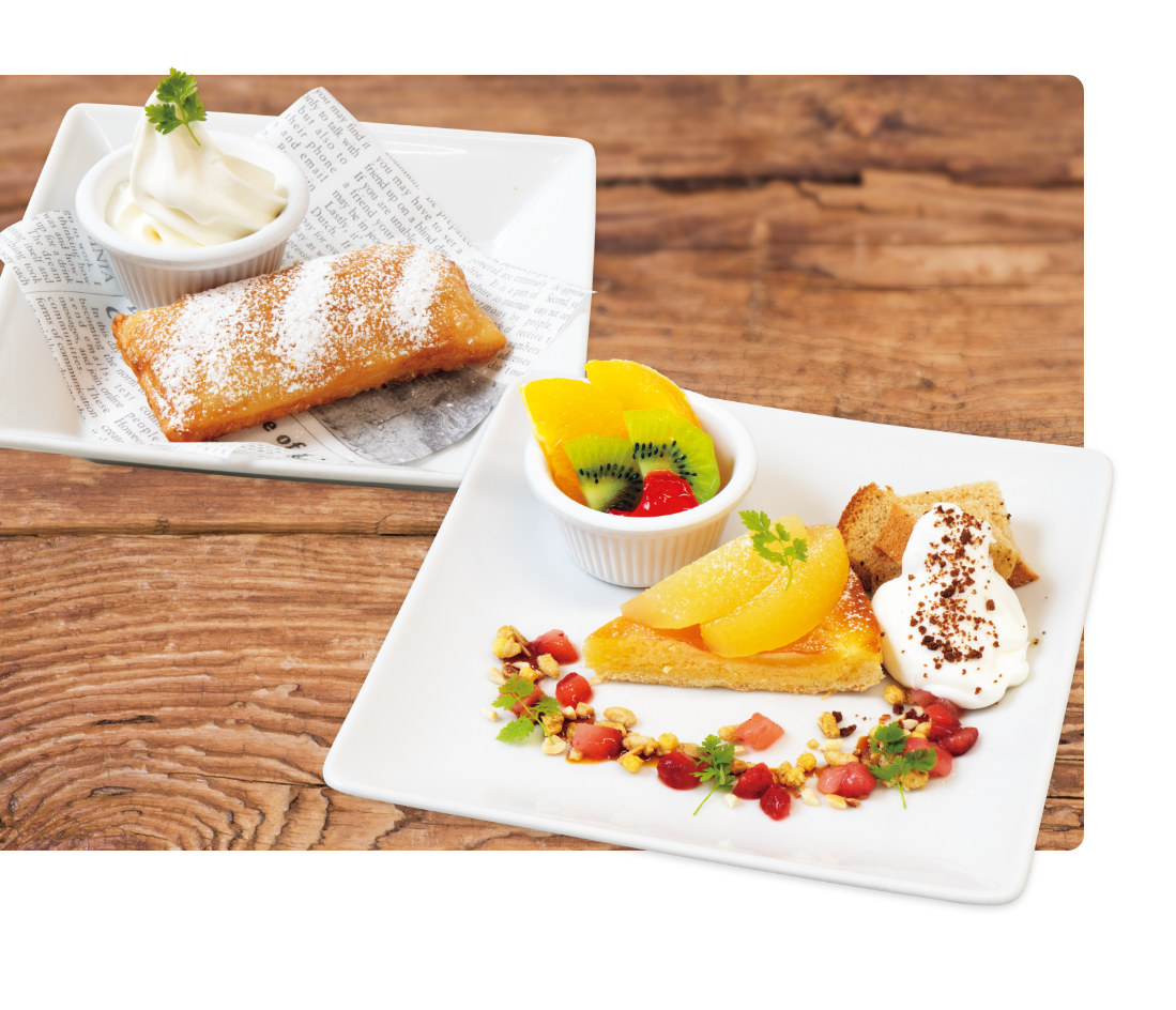 揚げたてさくさくのパイにソフトクリームを添えてあつ冷を堪能