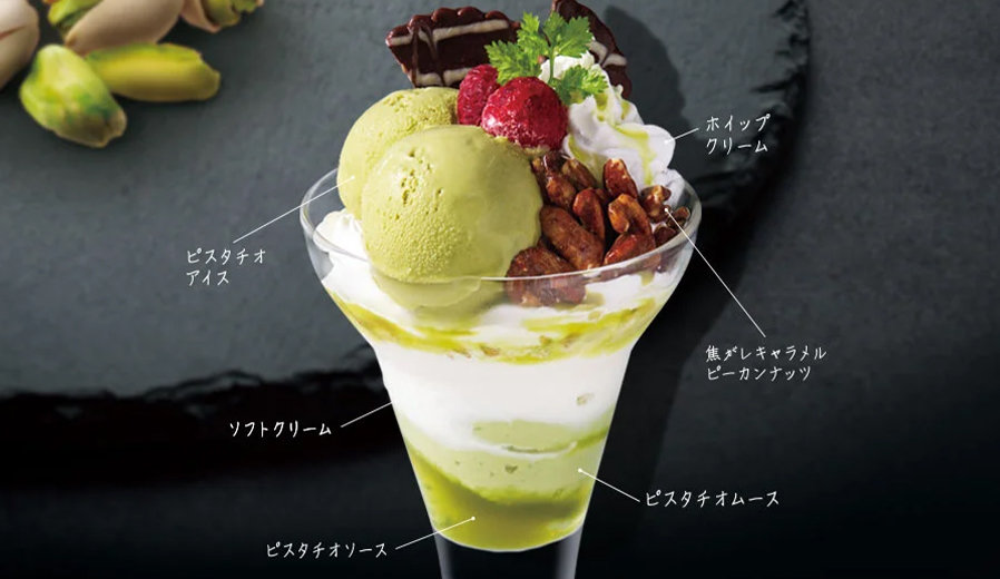 2023年11月9日(木)から2024年1月17日(水)までの期間限定で、トマト&オニオンのデザートの人気メニュー「パフェ」にピスタチオ&チョコレートが新登場! “ナッツの女王”と呼ばれるピスタチオと、ビターで濃厚な味わいのチョコレート。2つの味を楽しめるパフェをご用意いたしました。